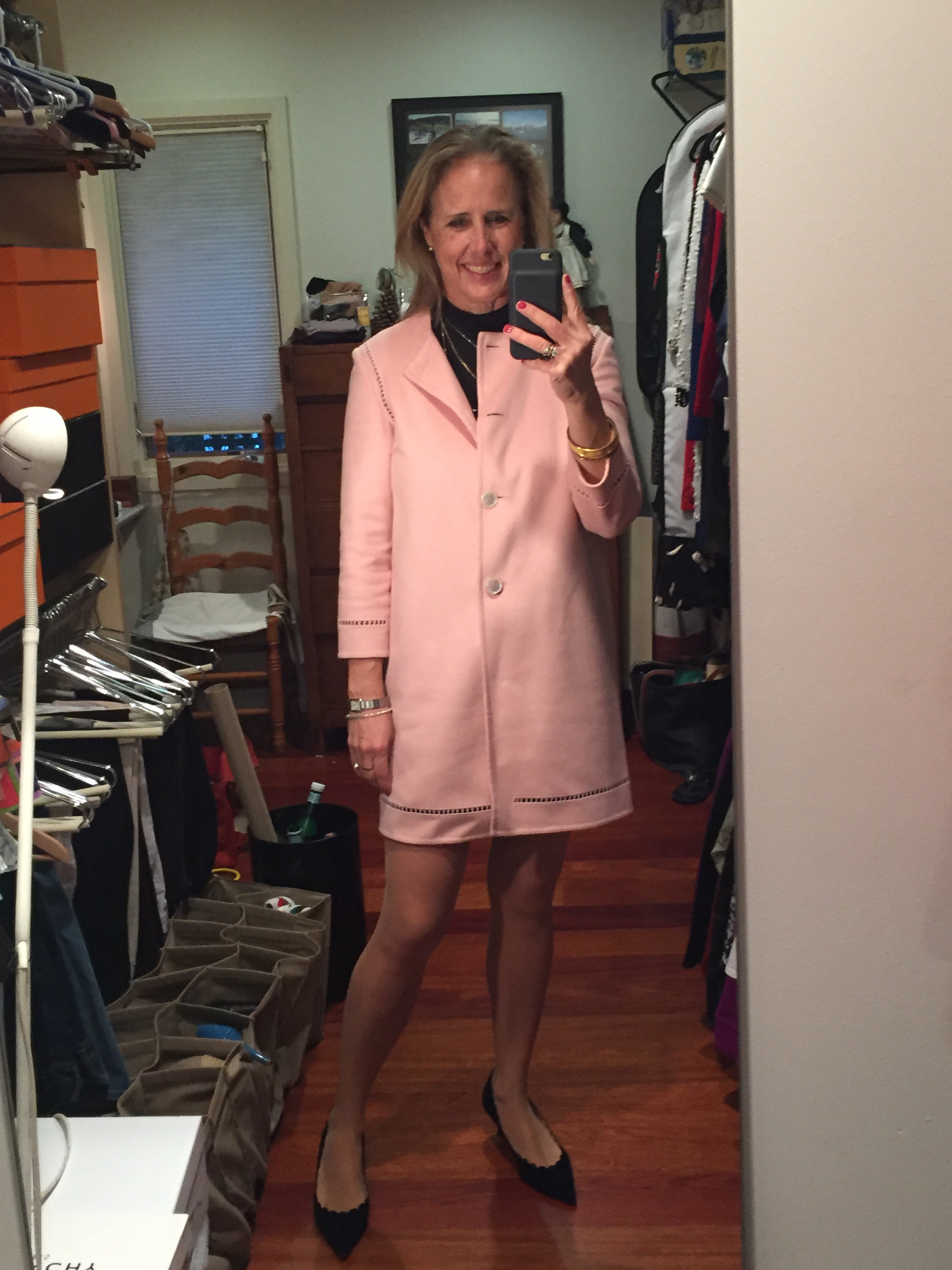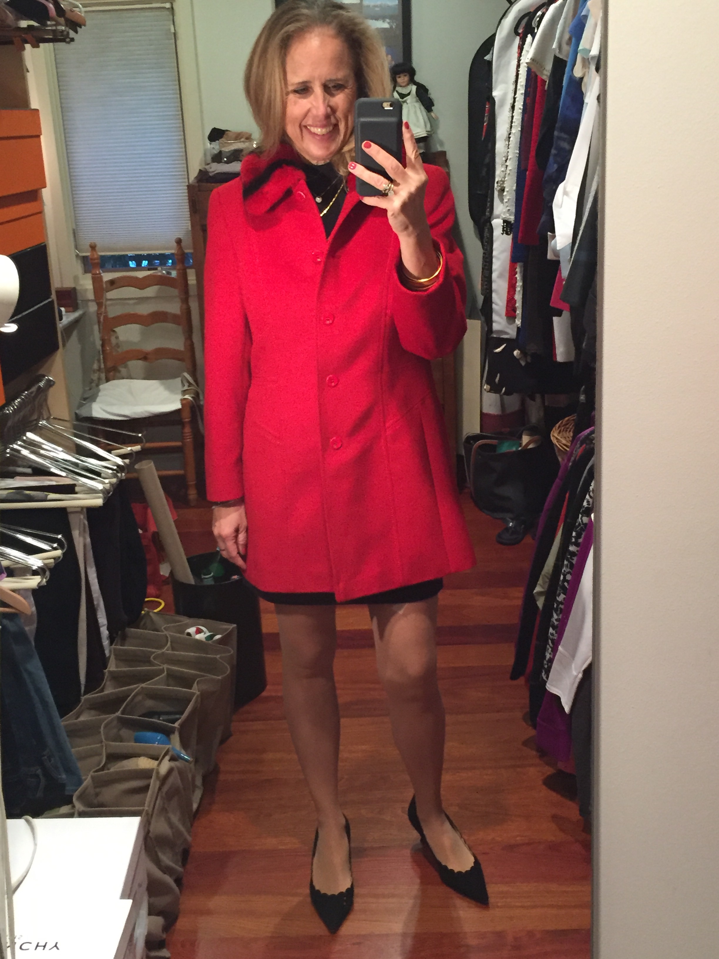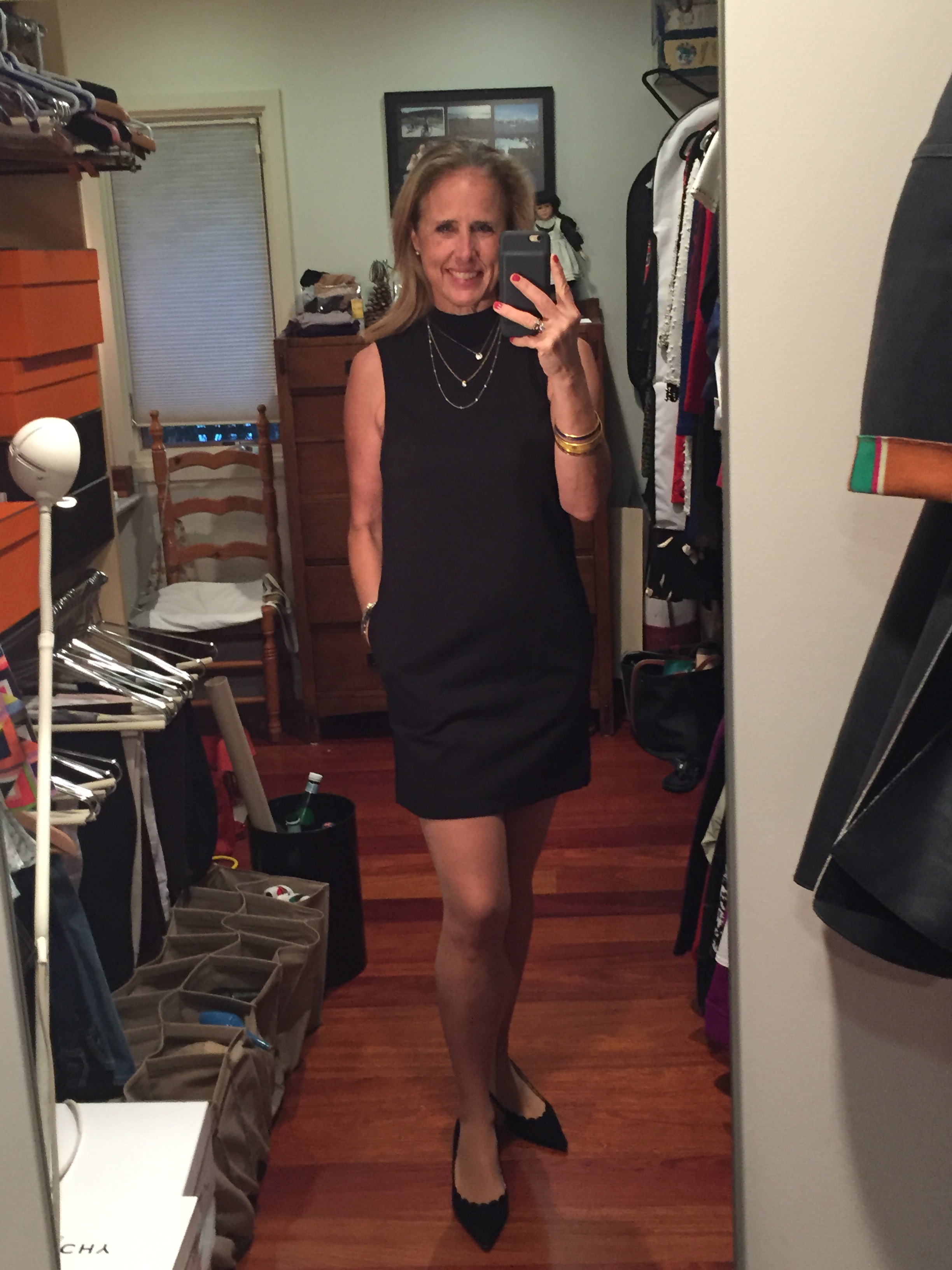 I love Kit and Ace’s tailored “Sleek Sleeveless Dress” in tencel/nylon/cashmere for its slim silloutte, deep pockets, the short hemline, and contoured shoulders and sleeve openings. The store also offers sweets for customers. The dress — which pairs well with almost everything in my closet — also comes in a navy blue silk!