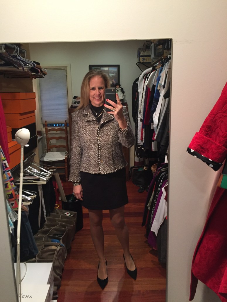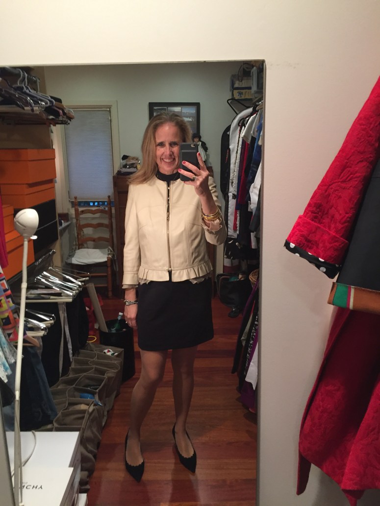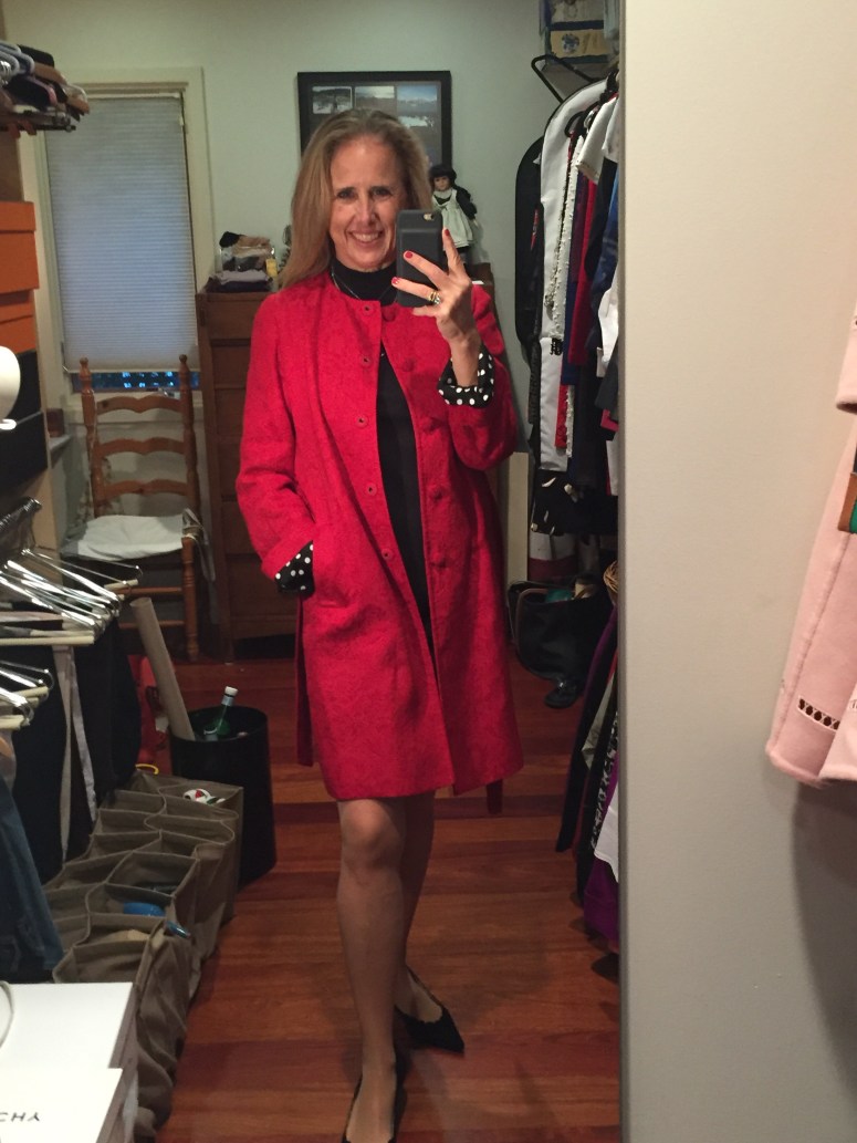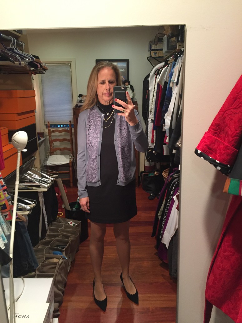 I love Kit and Ace’s tailored “Sleek Sleeveless Dress” in tencel/nylon/cashmere for its slim silloutte, deep pockets, the short hemline, and contoured shoulders and sleeve openings. The store also offers sweets for customers. The dress — which pairs well with almost everything in my closet — also comes in a navy blue silk!