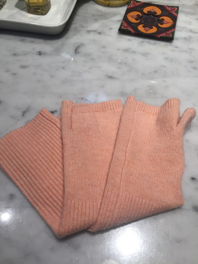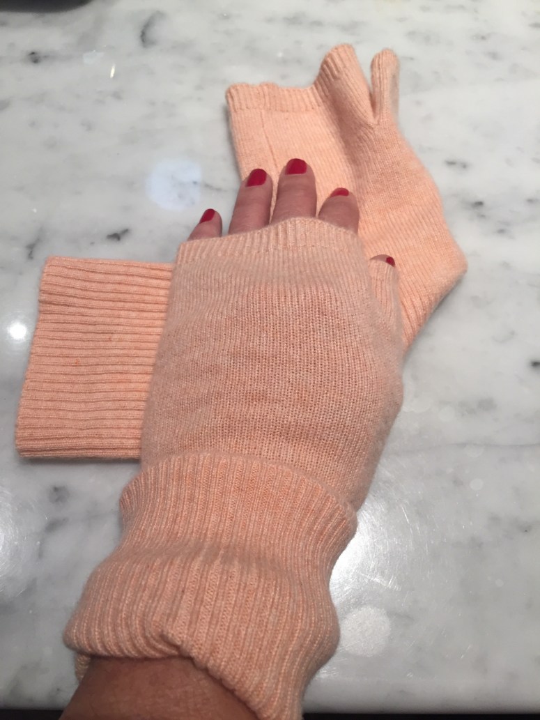 January 5, 2017February 23, 2017 by Playing_dressup_after_55 Eileen Fisher: Fingerless cashmere gloves? I have no idea what these cashmere fingerless gloves are called but I love them. Eileen Fisher sent me a long overdue rewards card last week so I picked up these adorable hand coverings — perfect to hide aging hands! Share this: Click to share on X (Opens in new window) X Click to share on Facebook (Opens in new window) Facebook Like Loading... Related