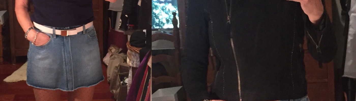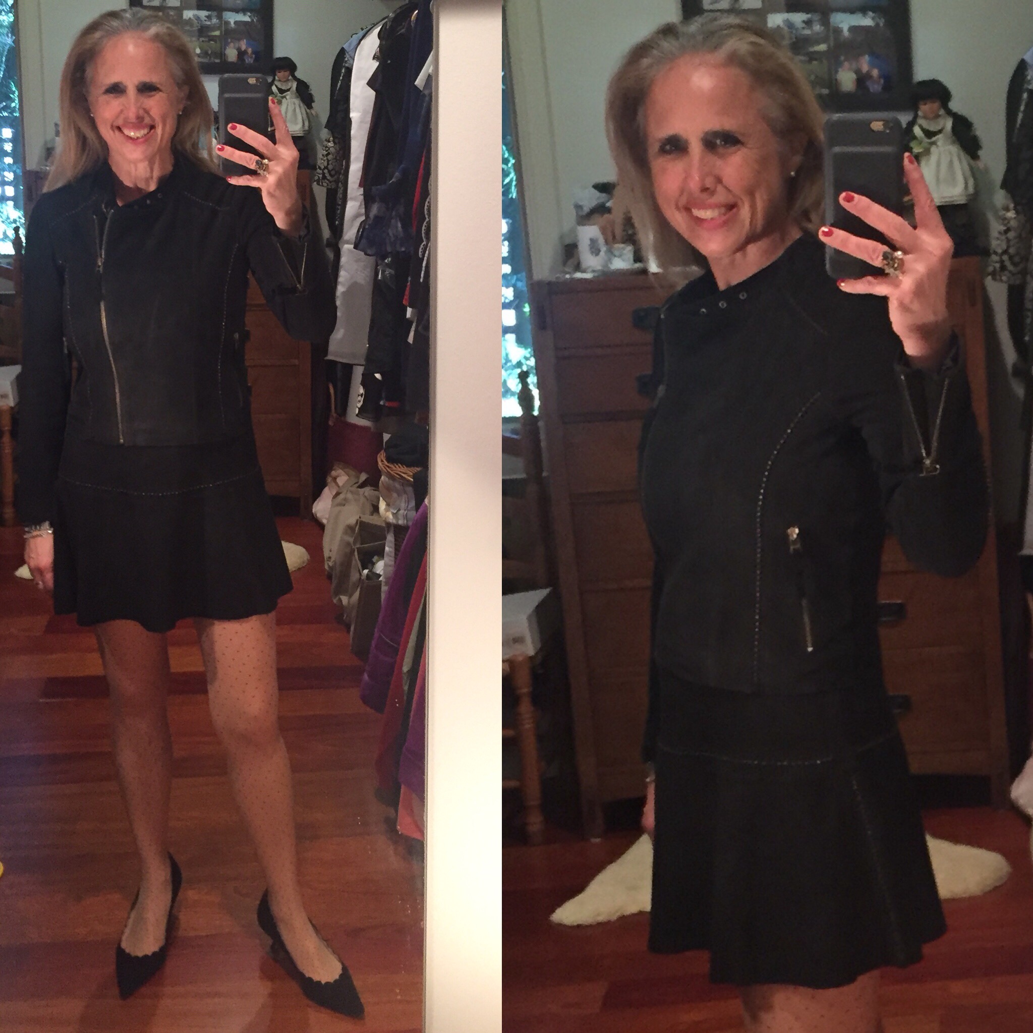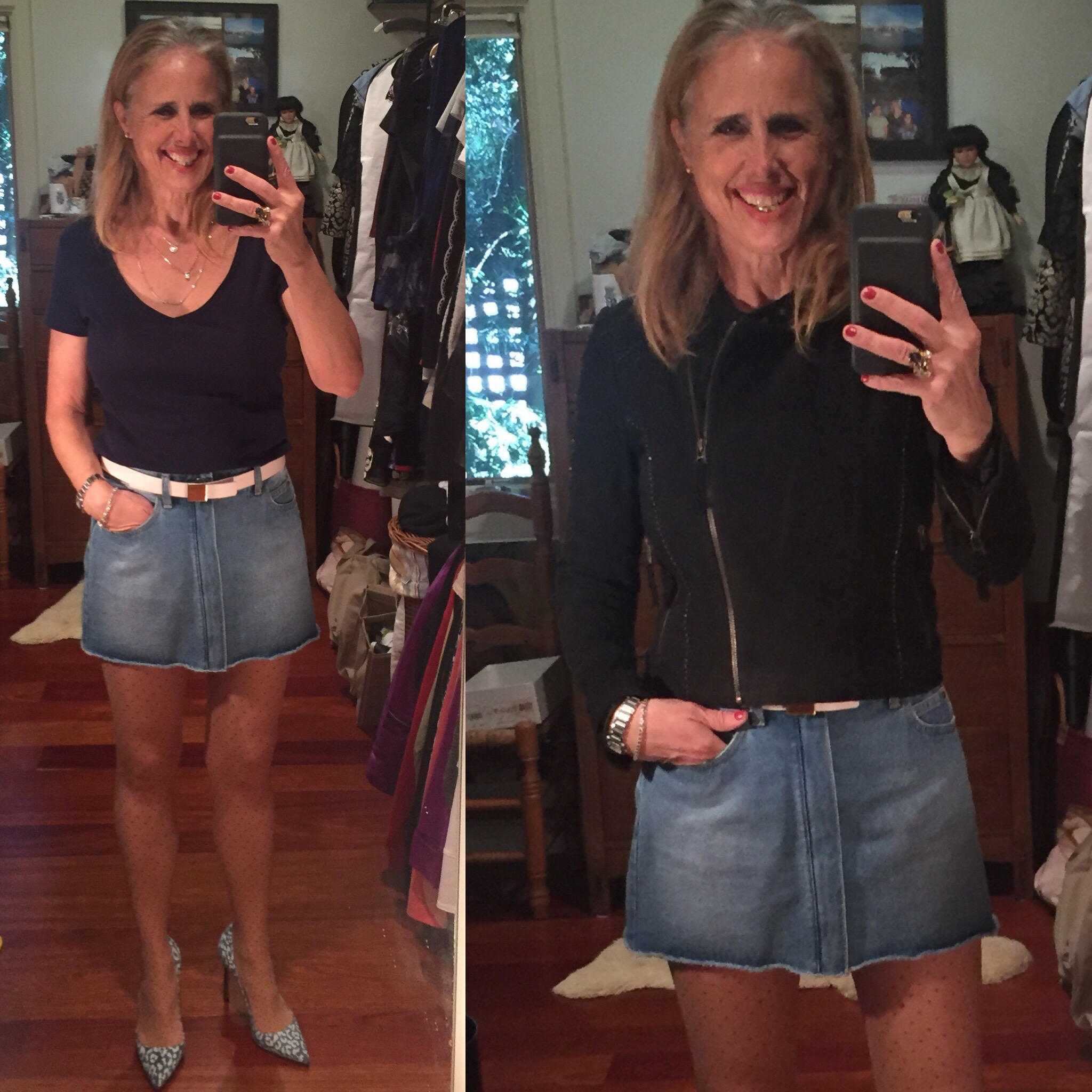 Darlings, if I have to be brave and face changes I need a fresh look to energize me. I cannot stand myself when I feel sorry for myself — because no matter what, I have much to be grateful for. Anyway, I was figuring out how to get out of my head today and found an inspiring talk by Kathy Capino on TedTalks that gave me a positive platform then I found the door open to the Joie shop in Pasadena. On the sale rack I found a suede jacket and matching miniskirt with a cheeky stud accent. Then I found a denim miniskirt that was well-priced and would help me revive a pair of denim Manolo Blahnik stilettos I bought last year on sale at NM.
