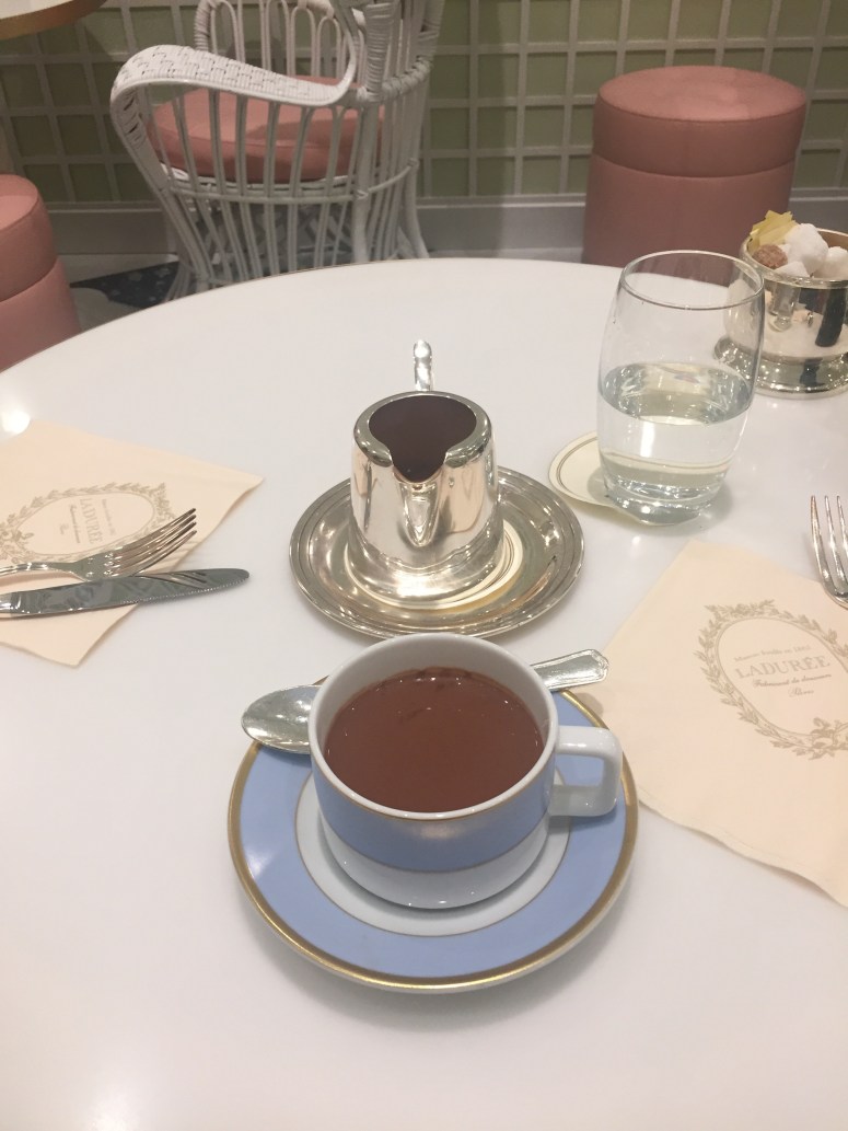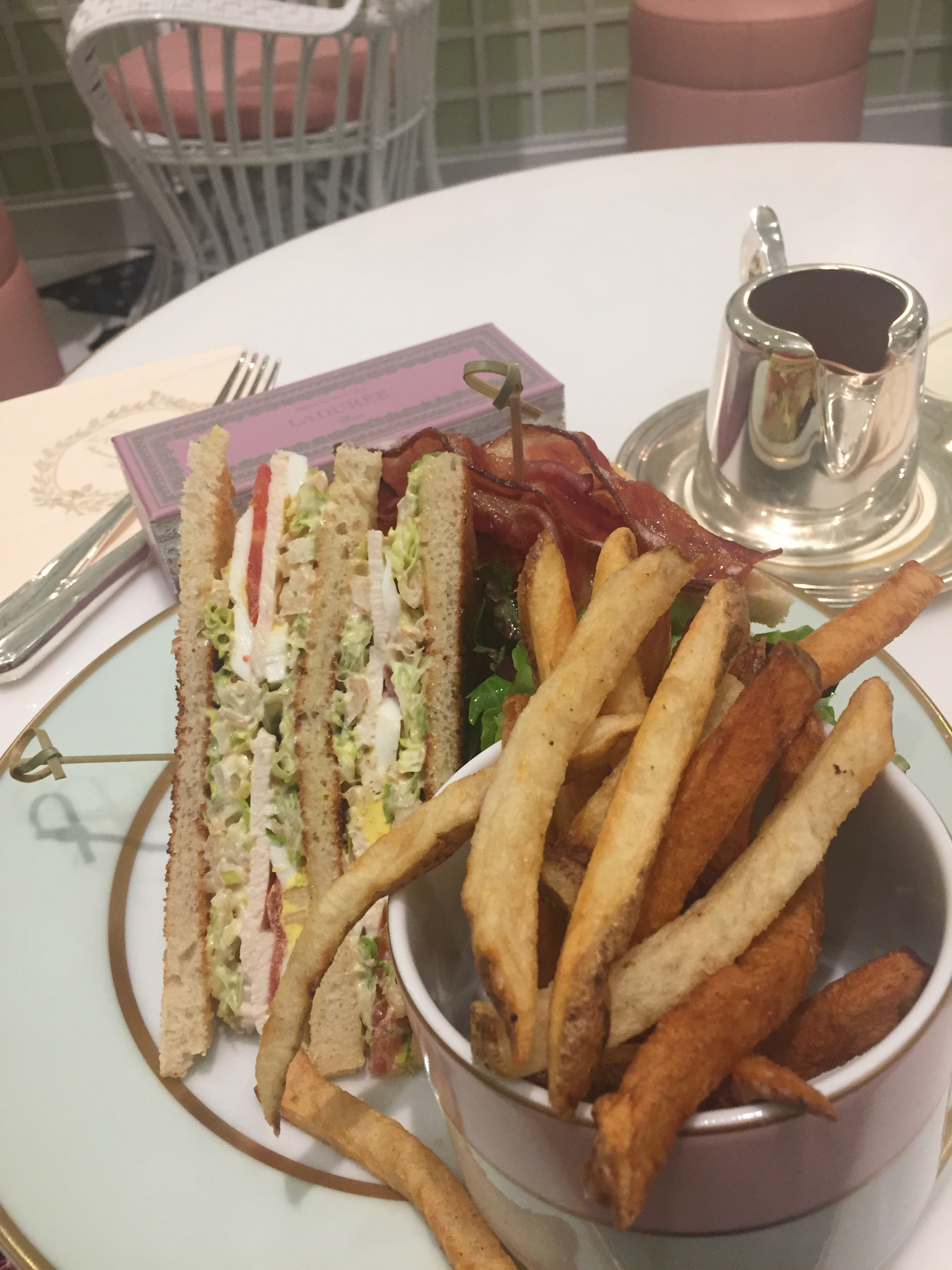 I don’t diet but honestly I don’t eat a lot of sweets — unless it is worth it. And macarons and hot chocolate from Ladurèe at the new cafe in Beverly Hills is worth it. I also ordered the Club Ladurèe with frites but you can be sure much of that will be taken home and eaten over a few days!