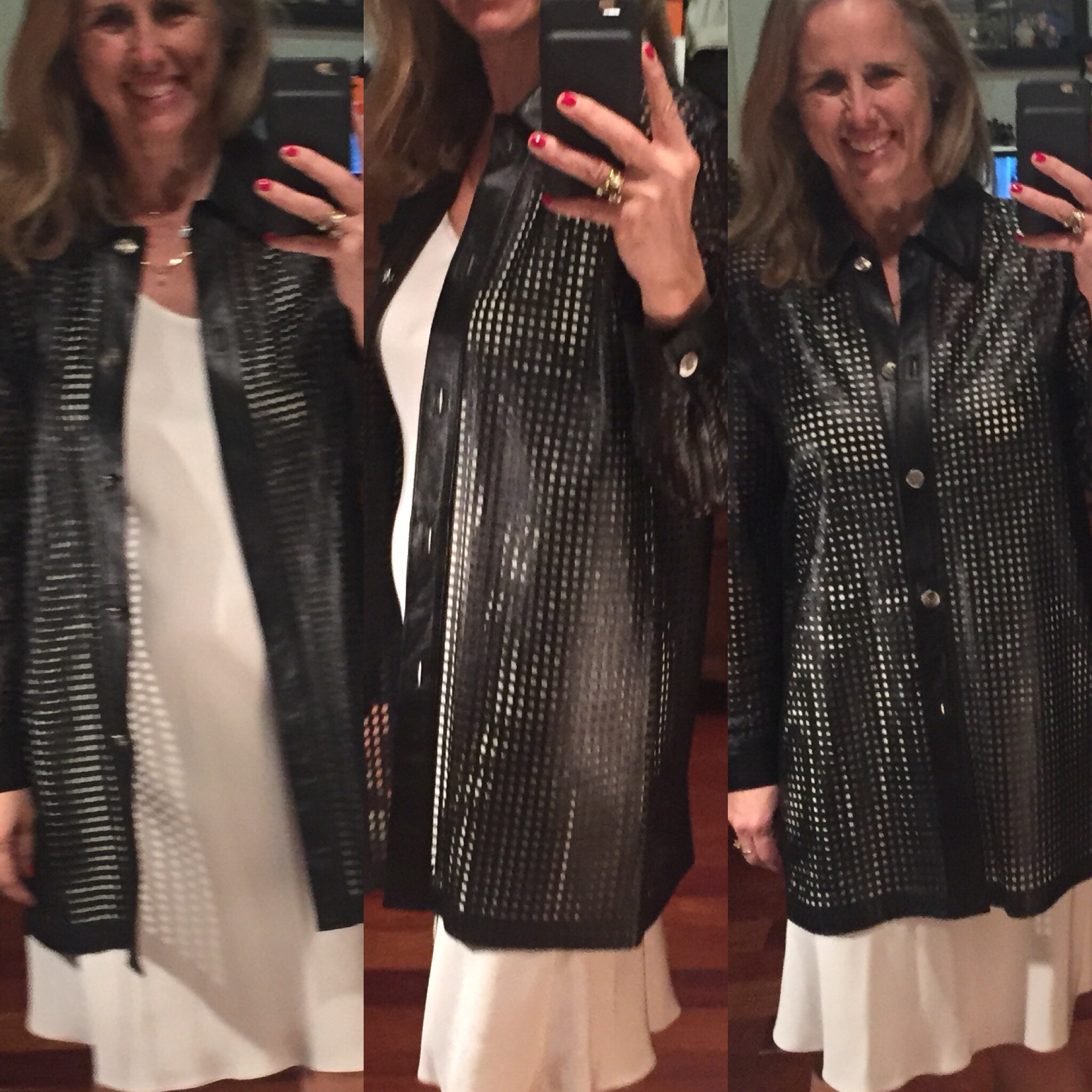 Then a long black leather jacket and a short pink jacket (both Escada from Clothes Heaven):