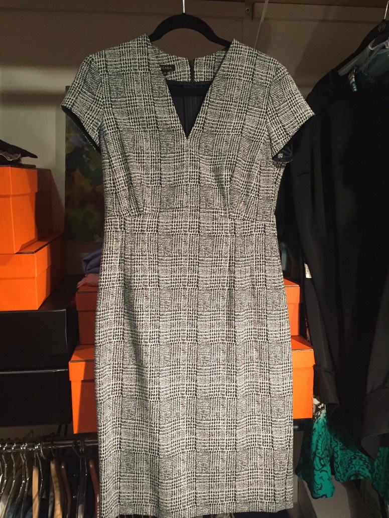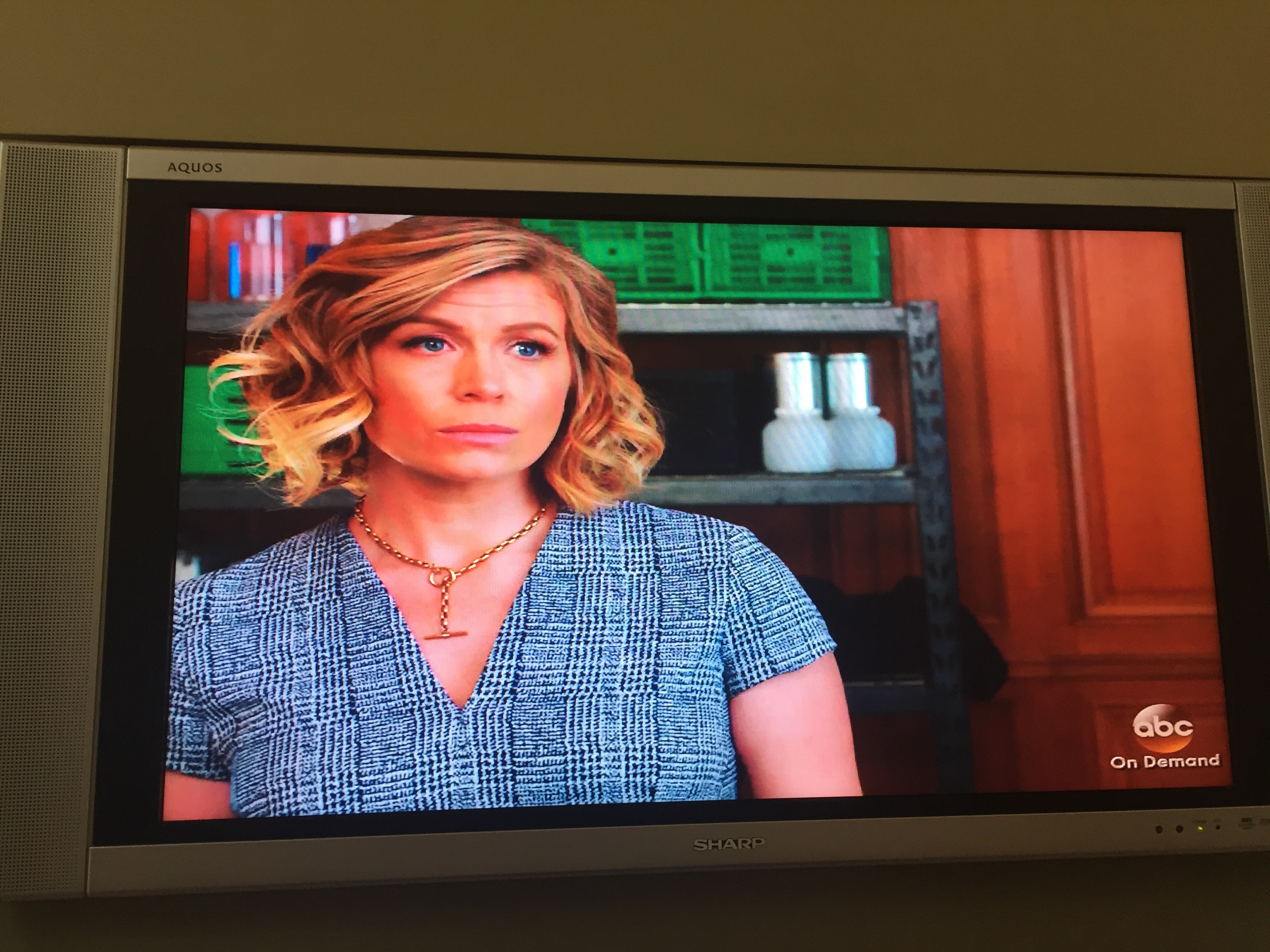Here in LA we find a lot of familiar places in scenes on TV — what is supposed to be DC is sometimes filmed in downtown LA. And today, a bit of a slow damp day where banks and government offices were closed on President’s Day, I found one of my Escada dresses on a character on TV!