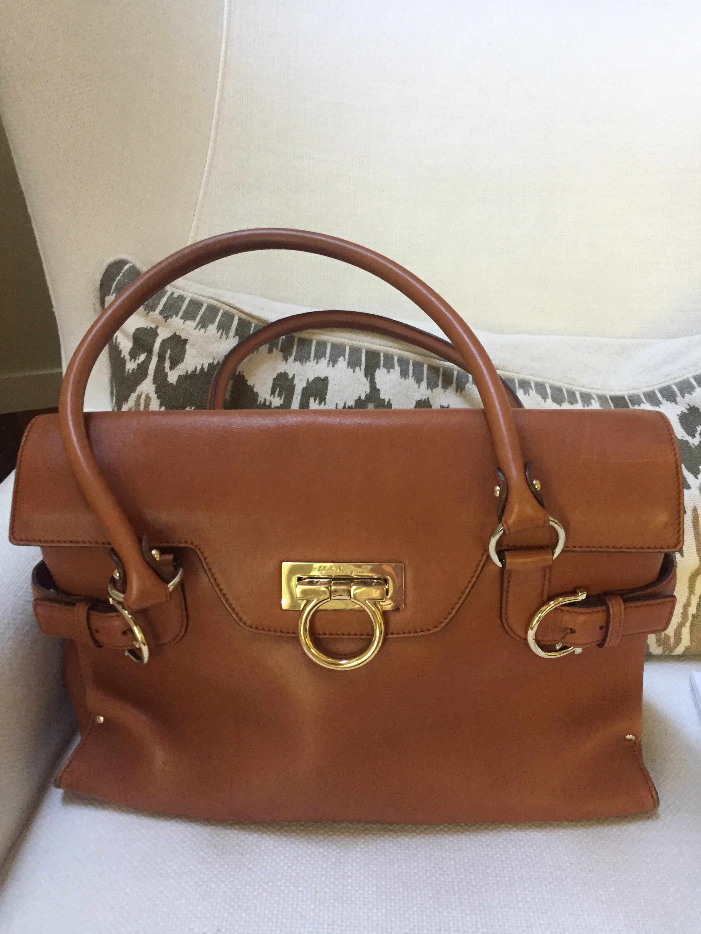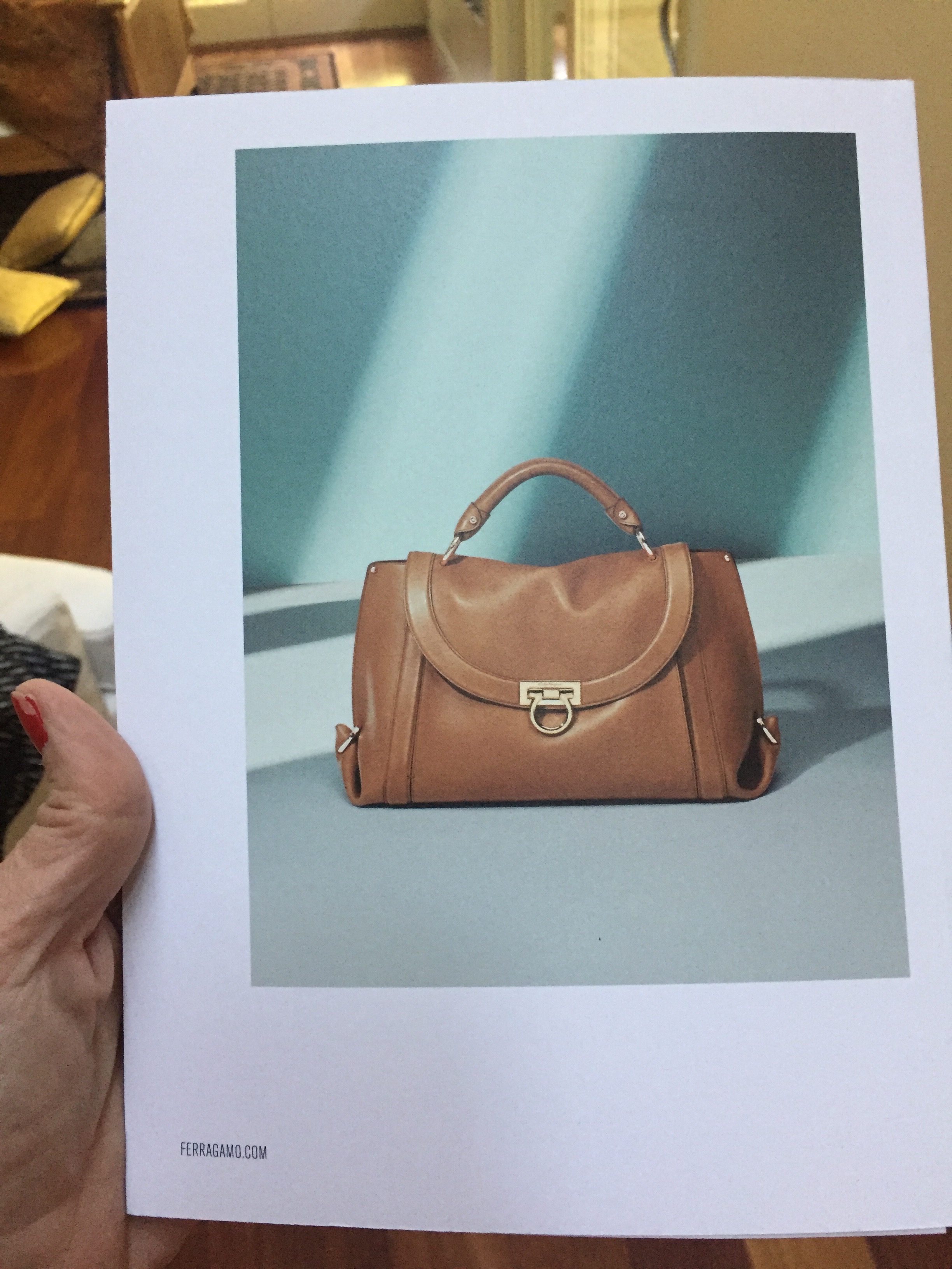 Close to 10 years ago I bought a beautiful leather Ferragamo handbag at the end of June sales in Paris. It’s a gorgeous roomy handbag — and a close version of it has appeared in the new spring catalogue which showed up in my mail today. My point: a good handbag never goes out of style so invest and go into your mature years in style!
