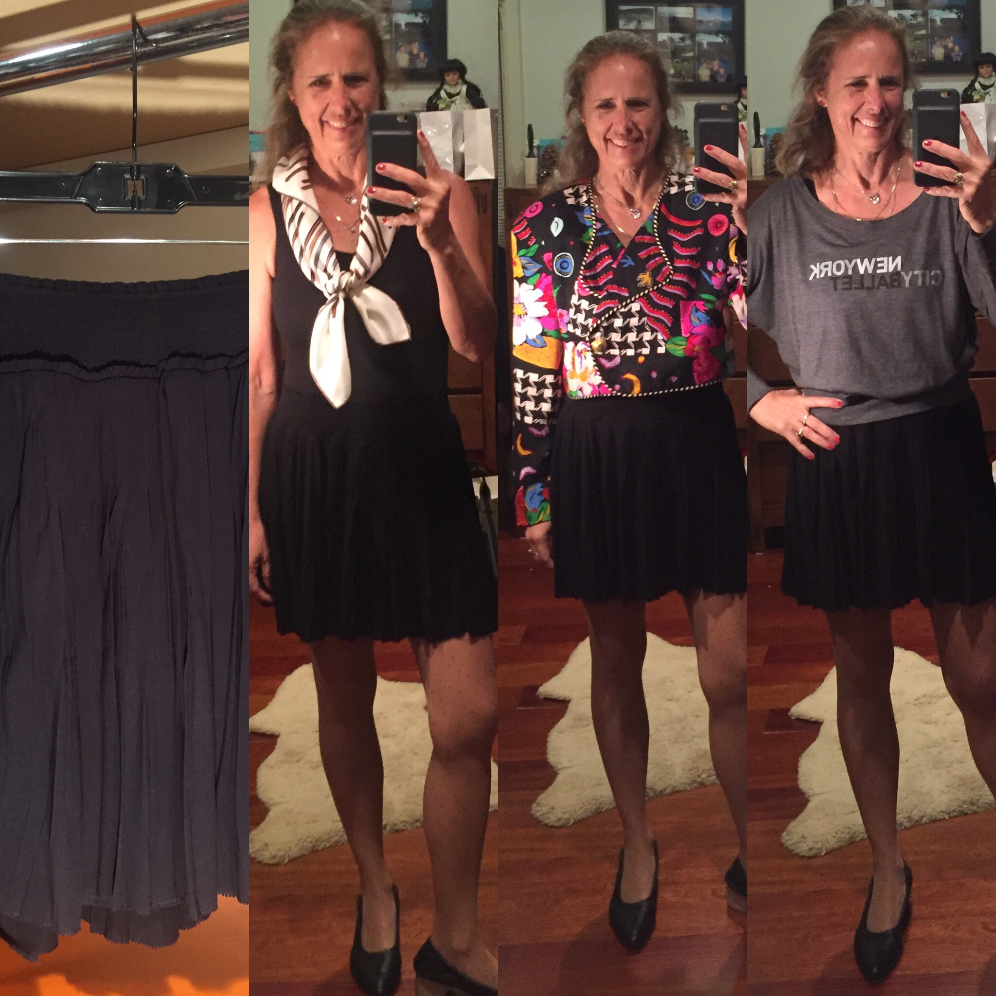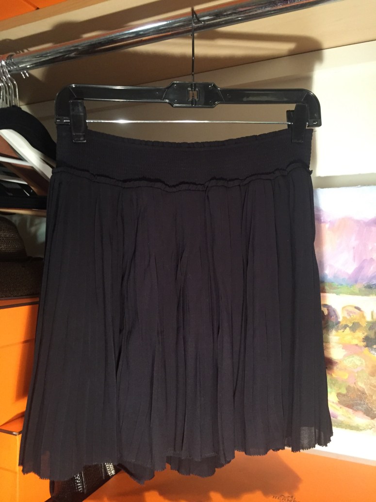I bought a black pleated miniskirt of viscose and polyester lined from Joie. It’s a playful skirt with a scrunched waist.