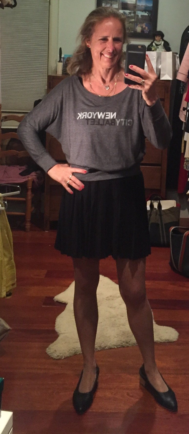 But then I had to make breakfast so I threw on this top from the New York City ballet which I had rescued from my daughter’s giveaway bag: