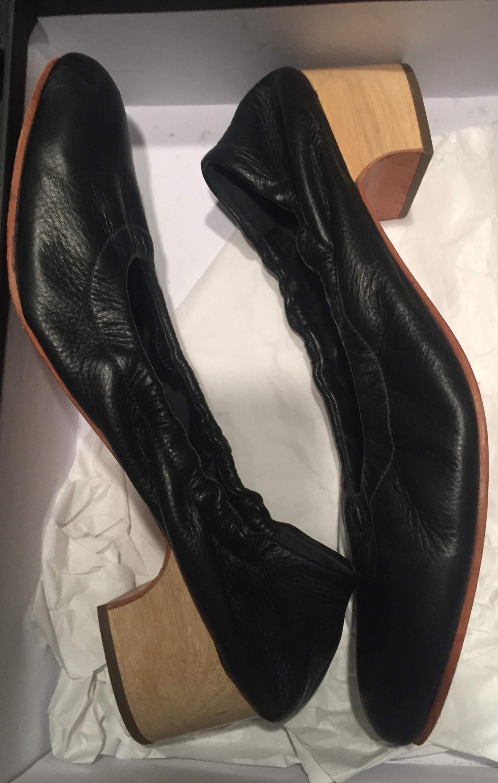 It’s part of my maybe rebellion into middle age that since I have athletic legs (ballet, Pilates, gym, tennis, yoga) that I should be “dating” and expose a few inches of thigh. It also makes me feel more energetic and less bogged down. This morning I put on a one-inch heel leather shoes by Rachel Comey which matched the casualness of the skirt.