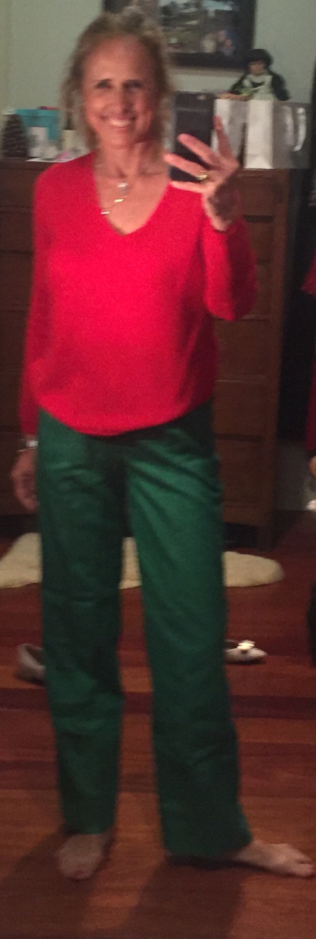 So I admitted I still have my lucky white jeans and my Junior Prom dress, but now I found my green preppy pants from sorority days.