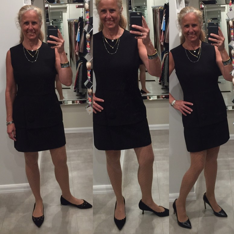 I paired the dress with Prada flats, Manolo Blahnik low heels, and Hugo Boss stilettos. This dress looked good with all three — which gives me the option of deciding how comfrtpable I want to be (I walked away in the scalloped Manolos).