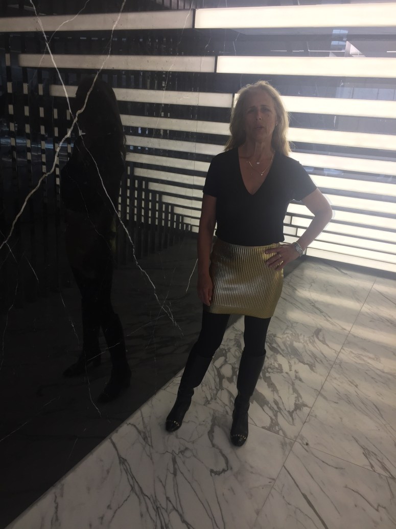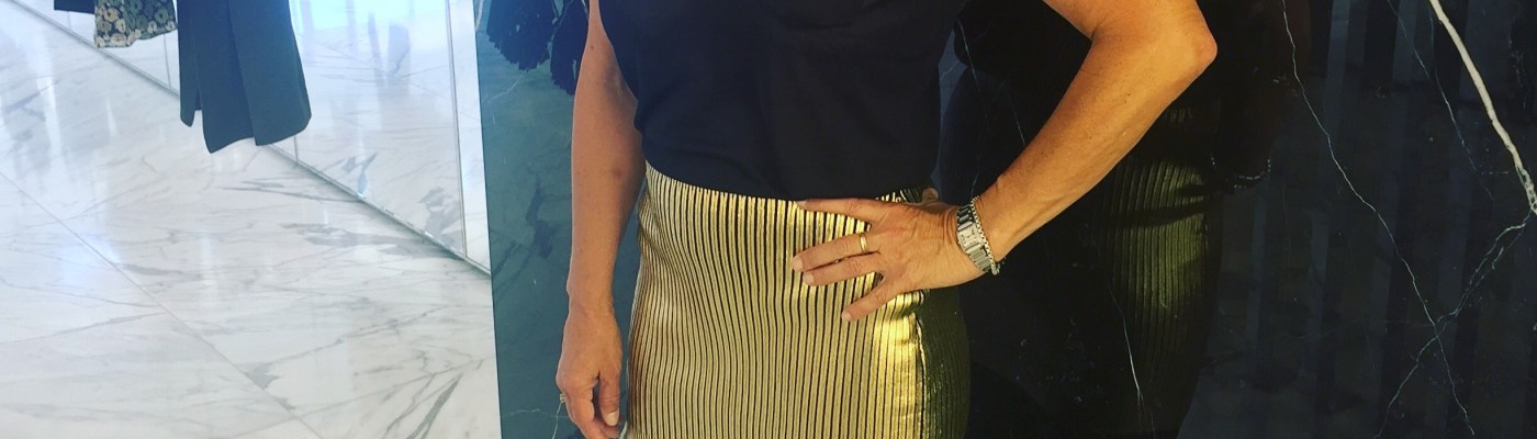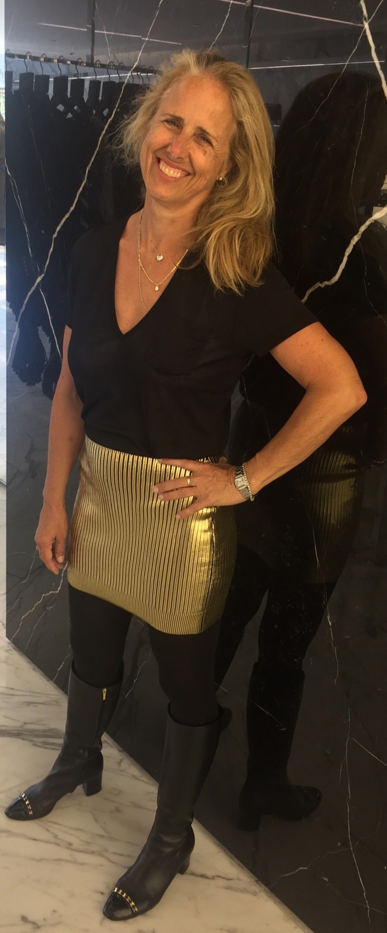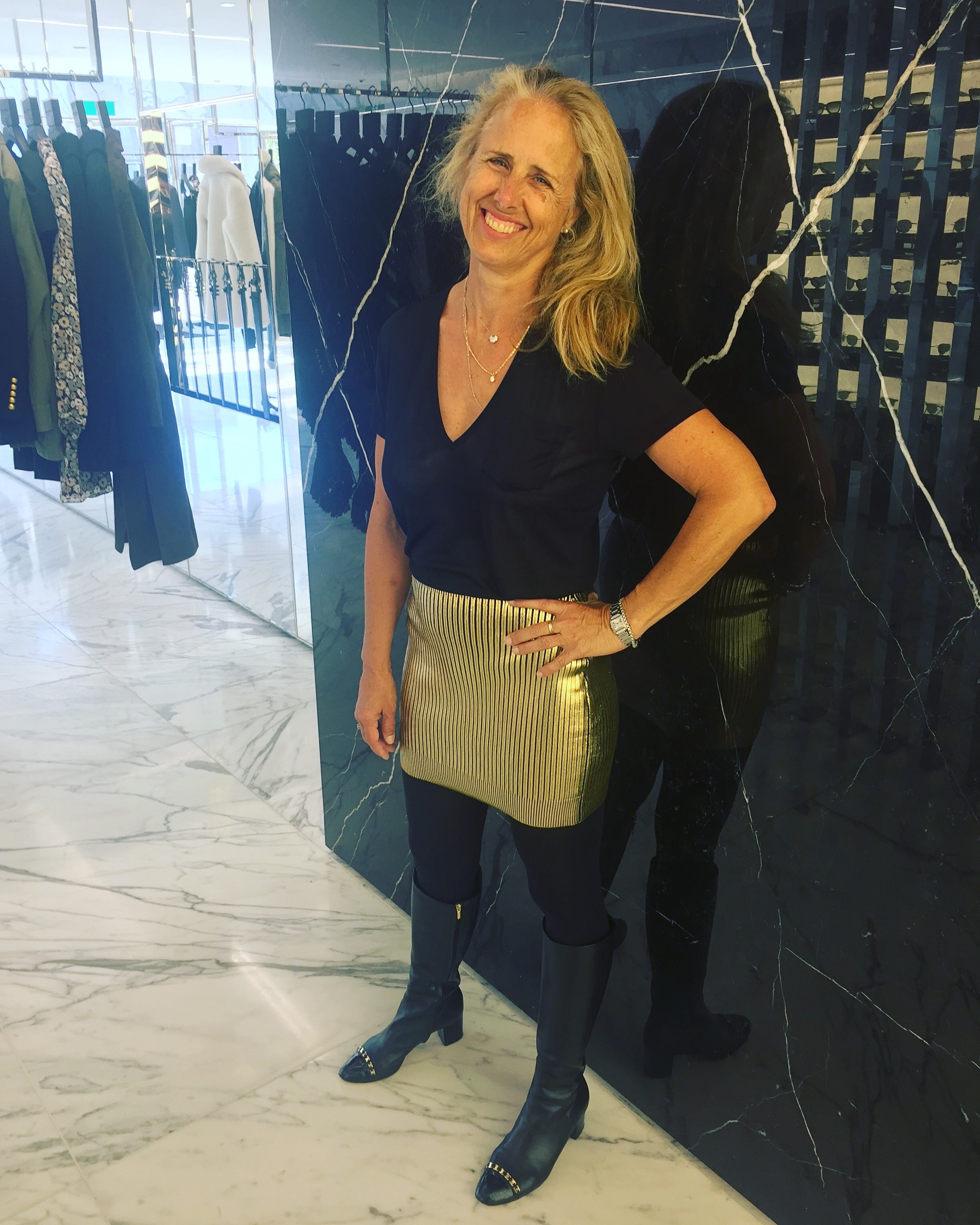 Blame it on the high I’m on after seeing the “Wonder Woman” movie: be bold, be proud and wear comfortable clothing, ready to defend yourself. Vancouver. Beautiful afternoon. Saint Laurent Boutique. Nice helpful sales staff. Gold miniskirt. Size: “XS”. If I can wear extra small 10 days before I turn 56 years of age (and I am 5’7″), then it’s not coming off my body if I can find a top — and I did: a sheer v-neck. Done. If not now, when?
