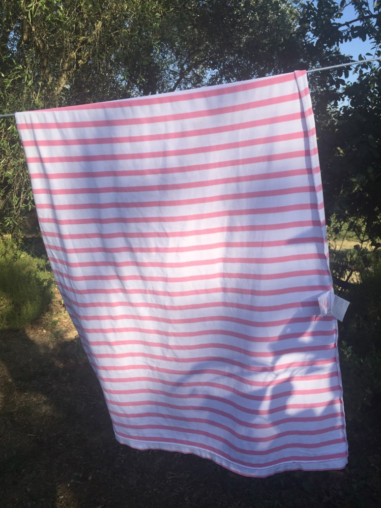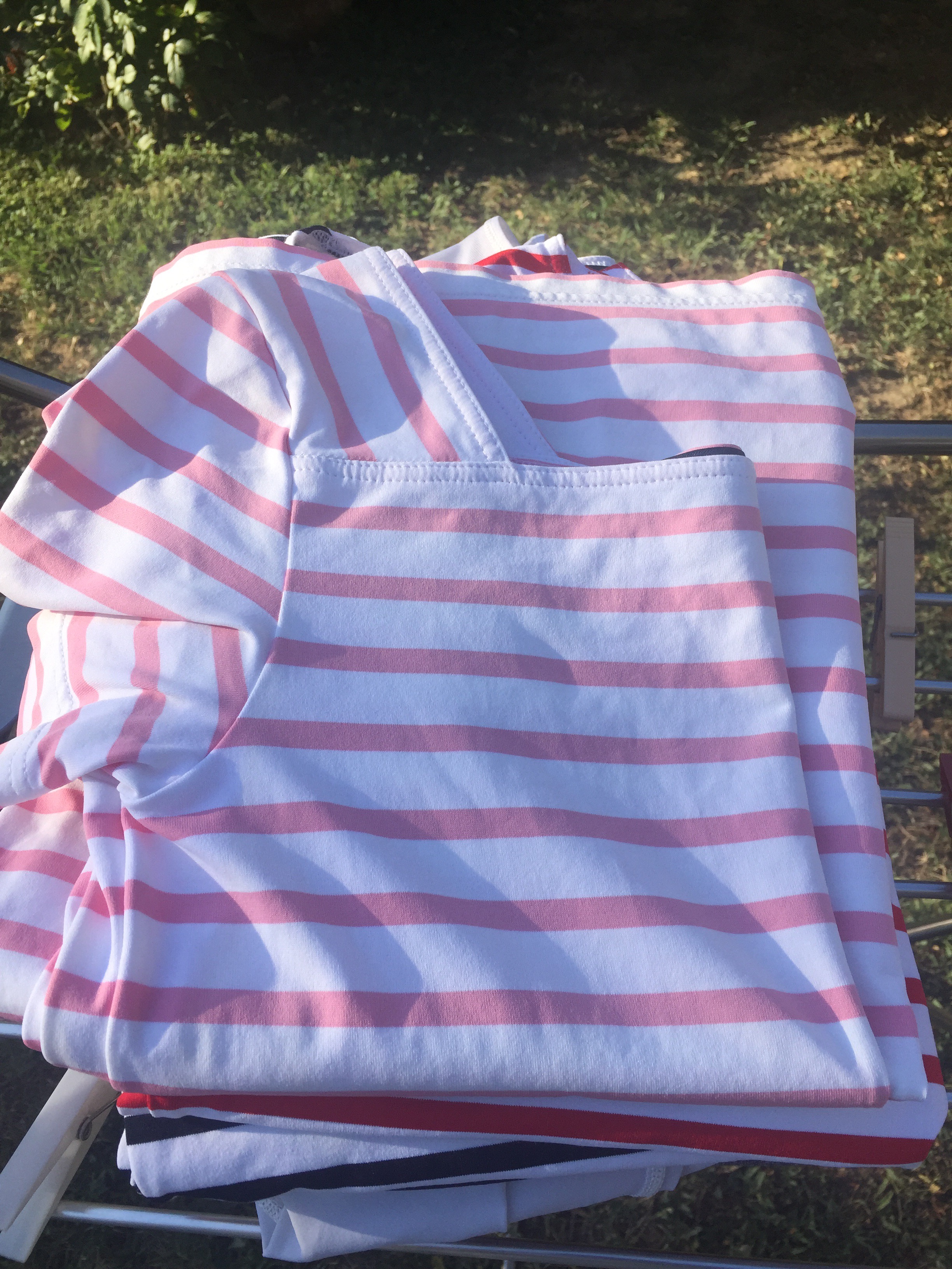 Unlike Southern California where we dry clothes in a machine, European living resorts to drying on a line. I noted that Saint James shirts and dresses do not get wrinkles which makes them sporty and chic and easy to wear from exercise to dinner.