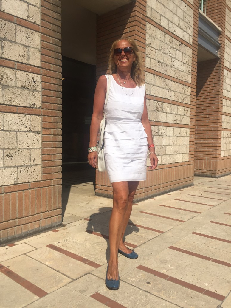 È troppo troppo caldo. This white linen Jil Sanders dress is simple and chic — perfect for a Saturday morning meeting friends inside the historic center of Amelia. You know I never want to leave here, eh? Here’s the photos my Partner-in-Fashion directed — we have too much fun together! One day she will overcome her modesty and shyness and you will see how beautiful and stylish she is every minute of the day!