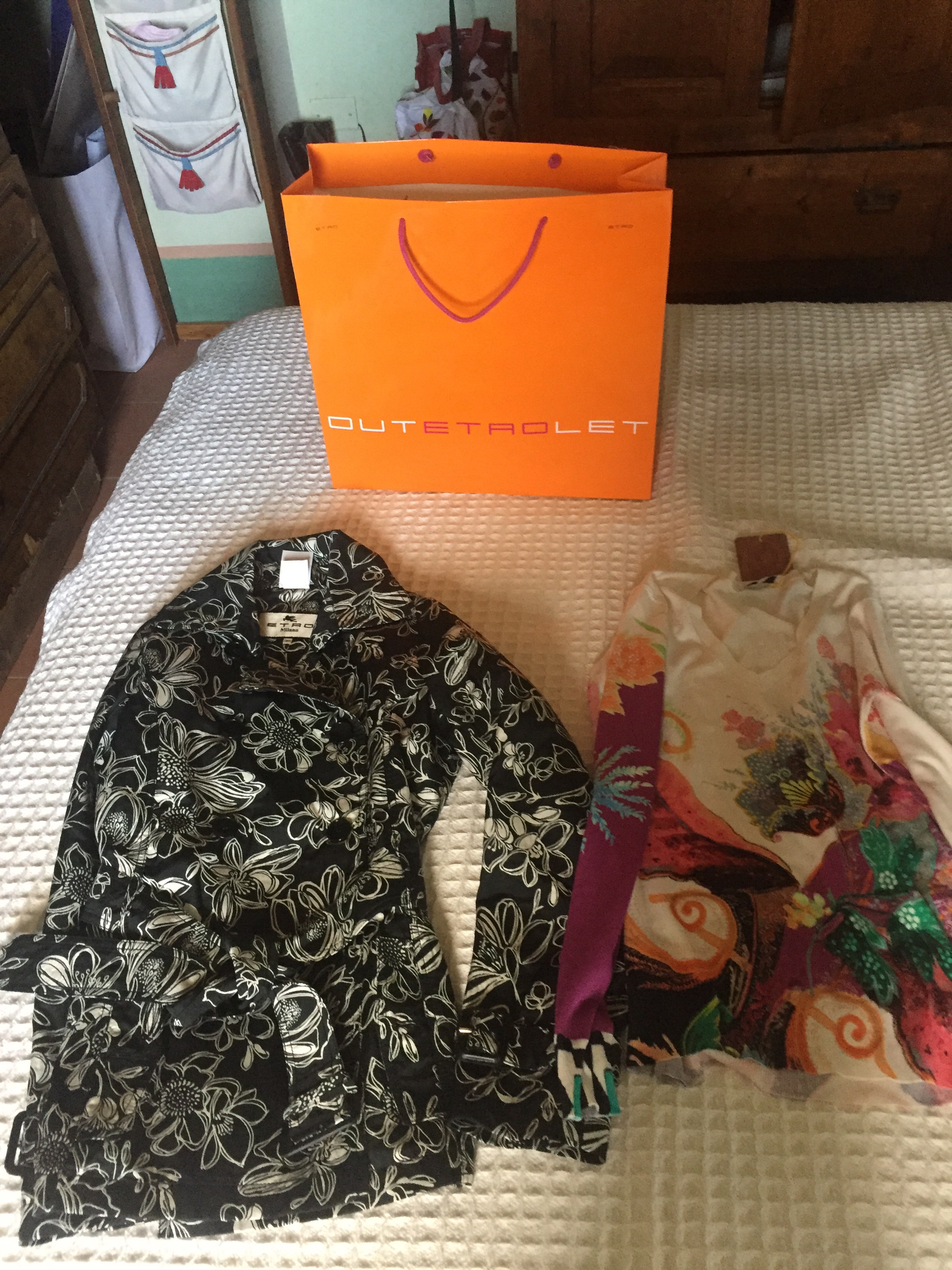 We went shopping at an outlet center in Rome yesterday and Claudia, my Partner-in-all-things-Fashion, found this gorgeous very affordable black and white Etro jacket. I got the craving for a pair of skinny jeans from Pinko and the Repetto sneakers came back on.