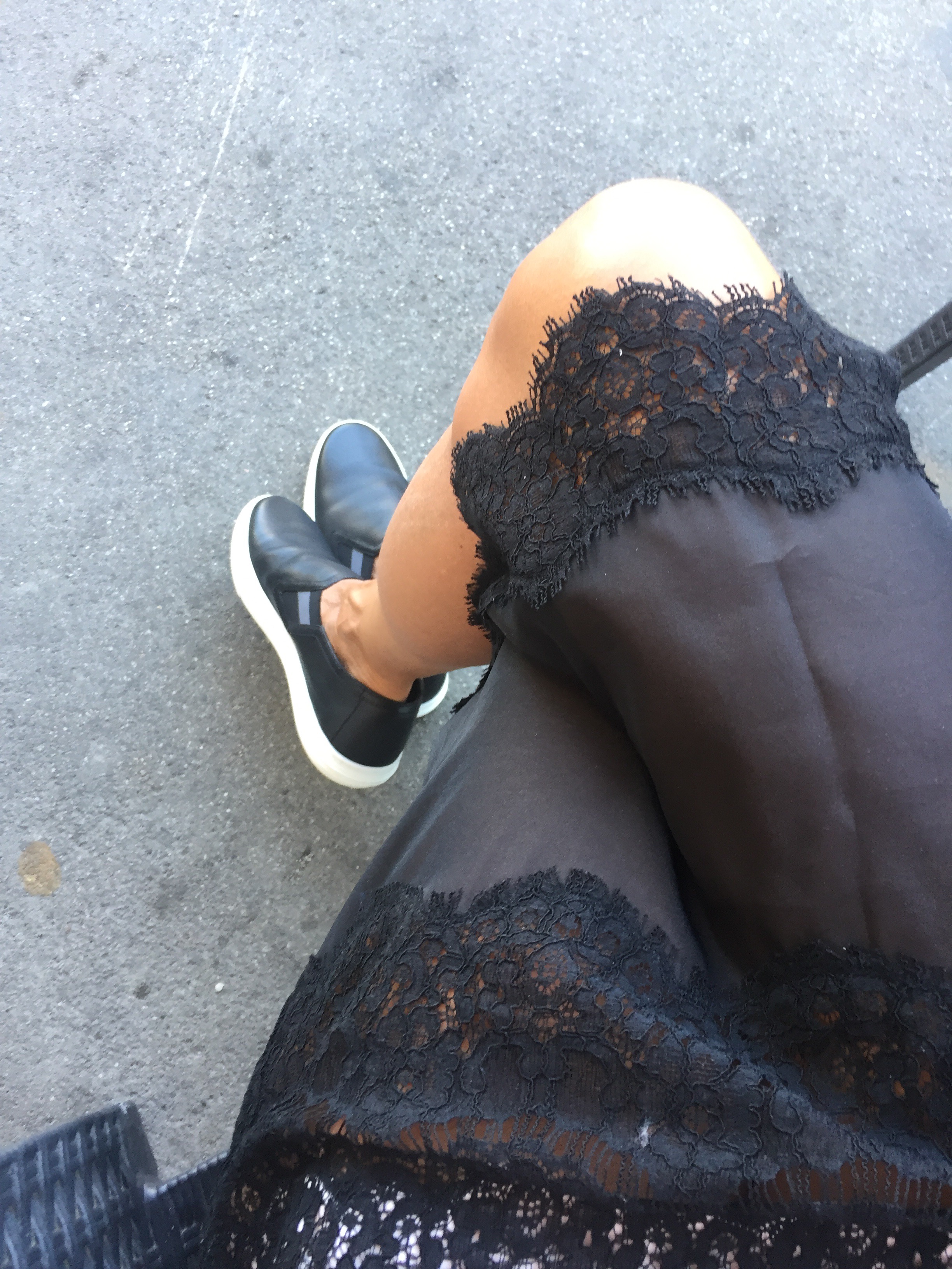Comfortable shoes from Gucci outlet (the dress is from Pinko):