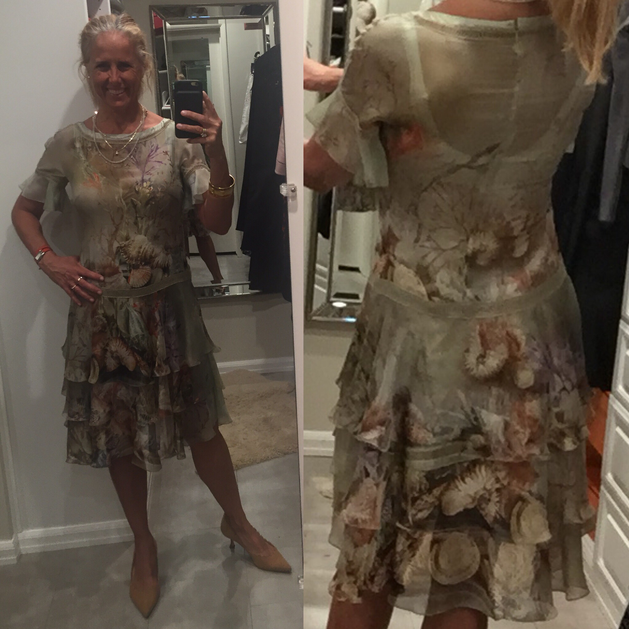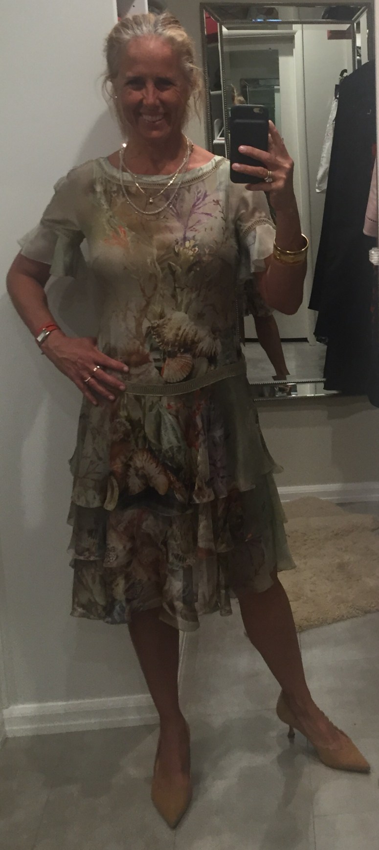 About an hour ago, I posted on Instagram a photo of myself wearing this Alberta Ferretti silk dress. Then I went to work in my office. I was researching the sale of a fake Picasso — reading an article online on The New York Times and saw in the right corner an ad from Alberta Ferretti Online Boutique showing this dress — the same one I was wearing. Wow. What software can do! So, here’s the link to the dress on sale and here’s a photo of the dress that I’m wearing to ‘write’ Monday morning.