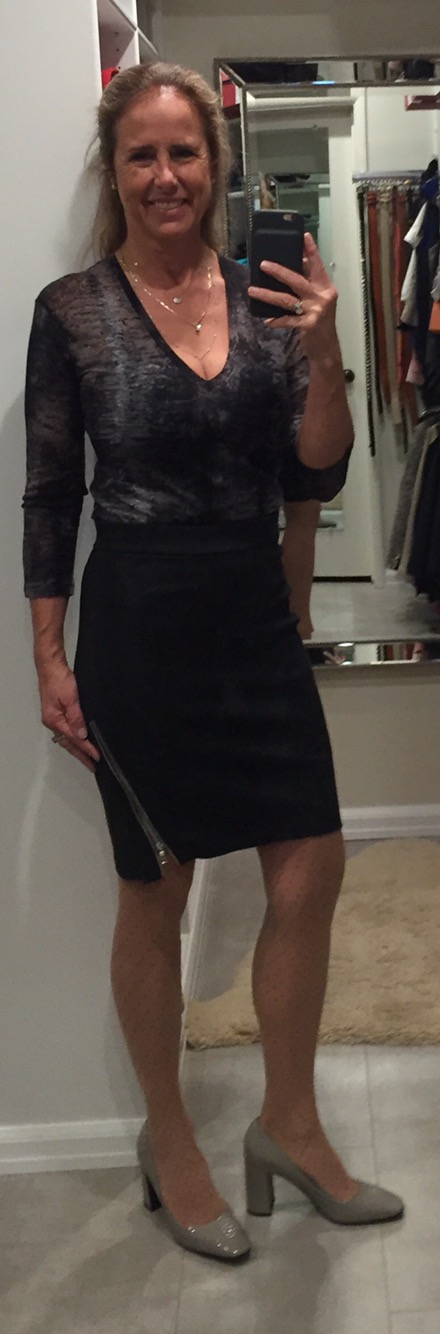 Samantha Sung sheer and soft v-neck shirt pairs well with my current obsessions: lace and nylons