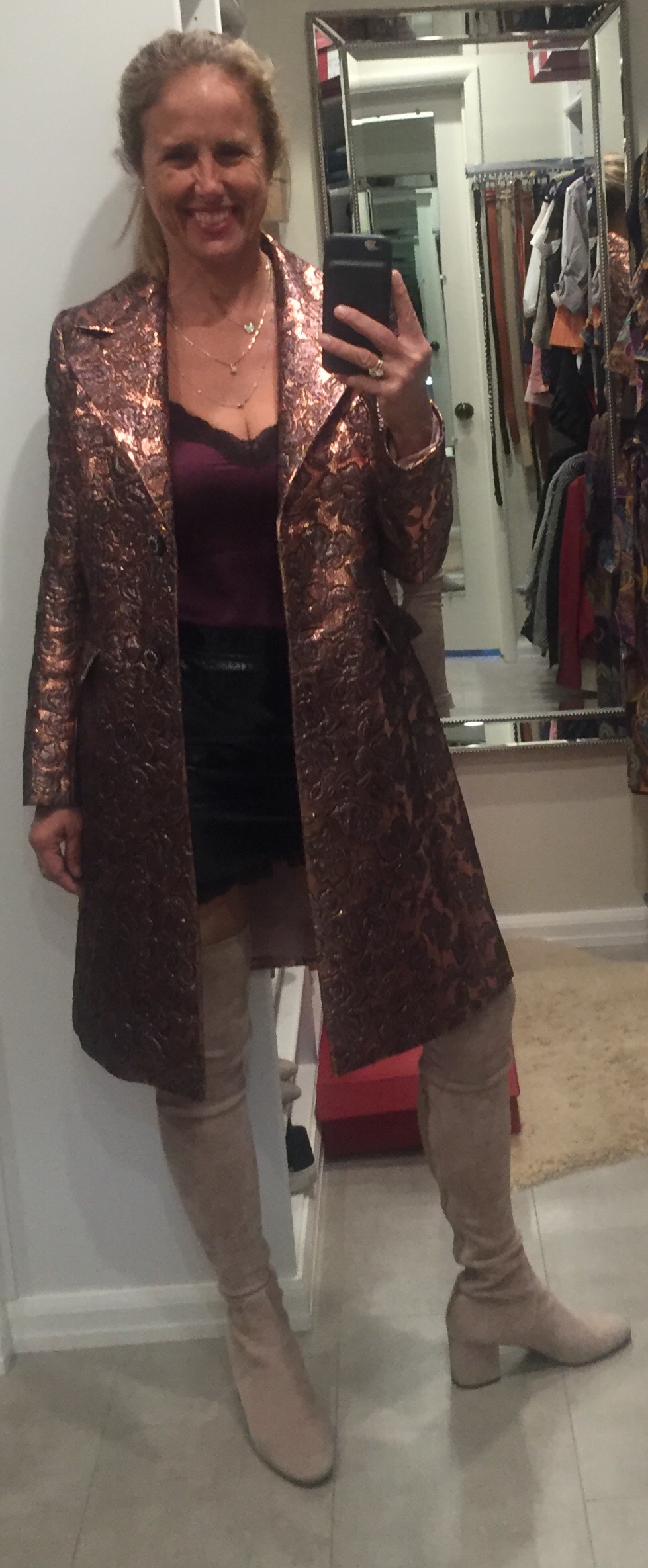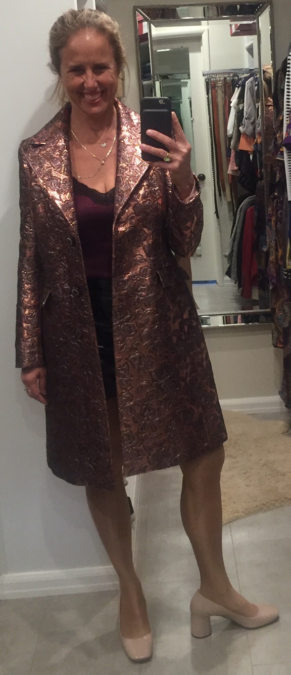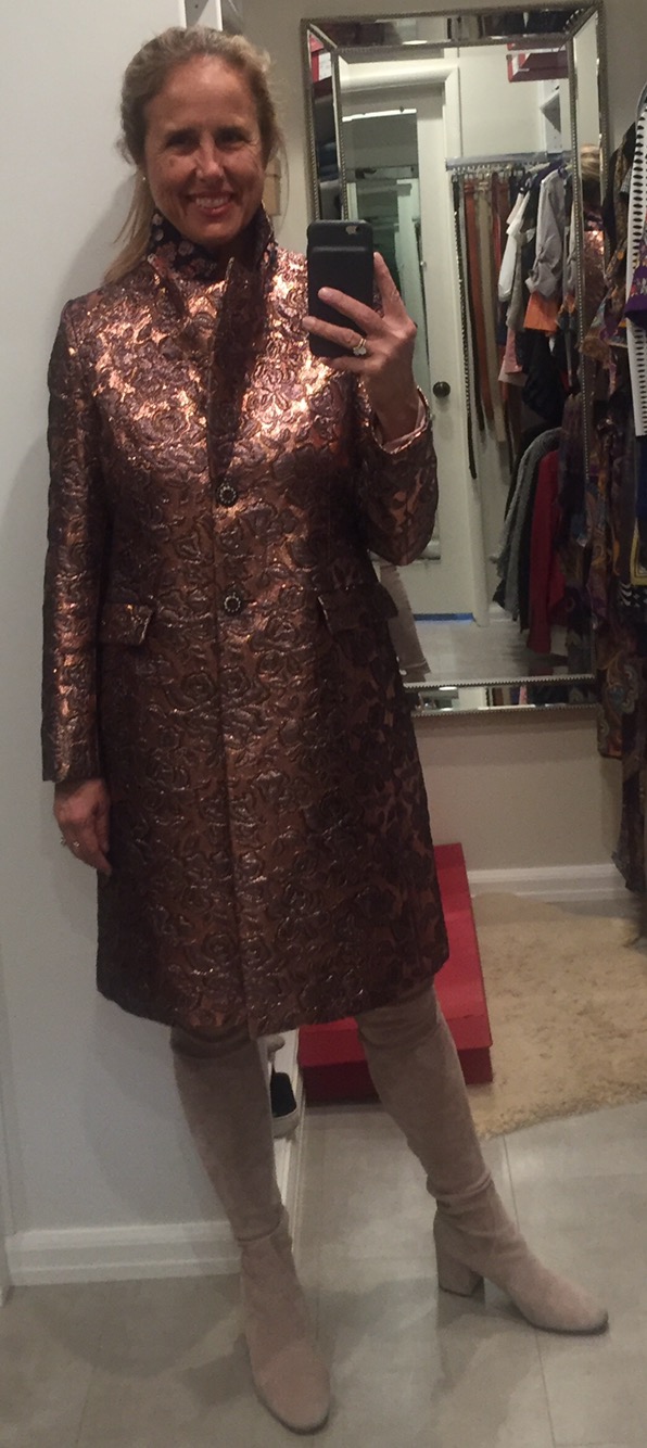 As Scott Peck wrote in “A Road Less Travelled”: “Life is difficult.” A friend’s beautiful young niece died from cancer this week. And all of us know moms and dads who died from cancer — leaving behind small children. It is unfair. It is tragic. And my heart has compassion for the families. My cousin died from cervical cancer almost 20 years ago — and I will never stop being sad. I loathe cancer. And that’s why I love this crazy over-the-top pink floral brocade coat by Etro — it is outrageous and energetic. I hope, as I go about town and look just a little bit ridiculous and glamorous — and smile — that some people will enjoy a bit of light. Here’s to all the beautiful souls rushed to Heaven by cancer.