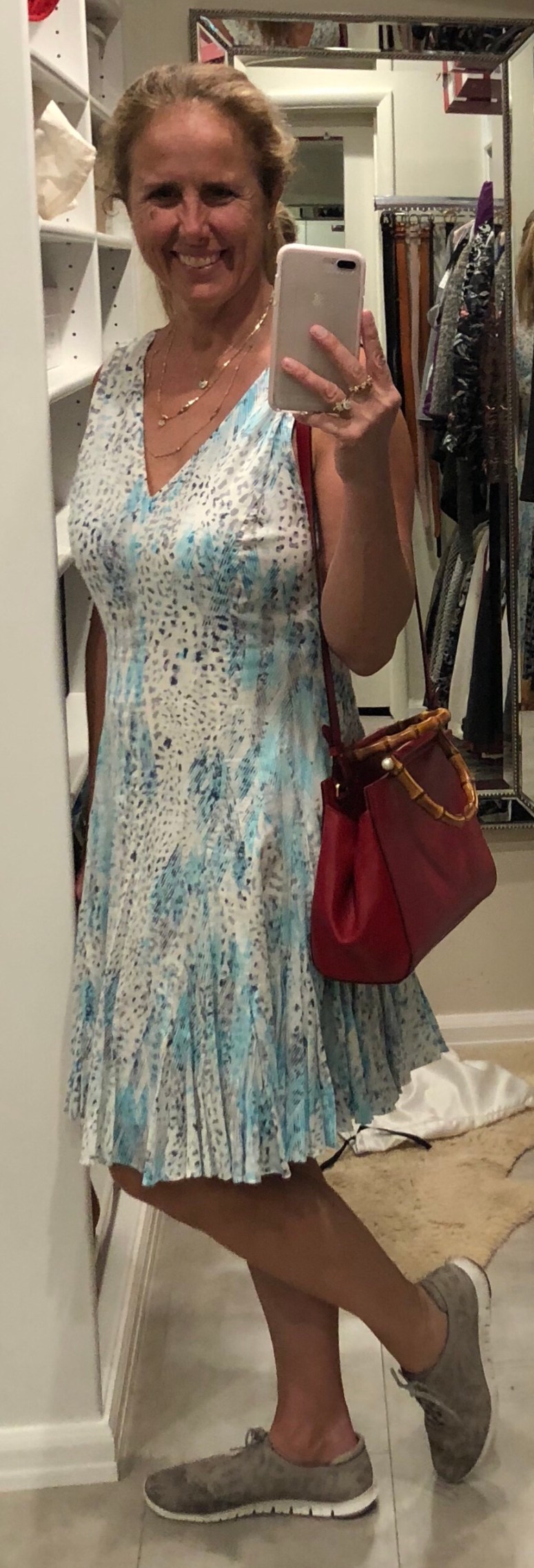 Friends ask me what to wear in Europe, especially about comfortable shoes. Very simply: no shorts, no sneakers OR you’ll stand out as a tourist and could be a target for theft. Due to our unusually warm LA weather in February, yesterday I wore a loose dress and a pair of comfortable Cole Haan trainers that are perfect for walking around a European city. I am also a fan of Chanel and Repetto ballet flats.