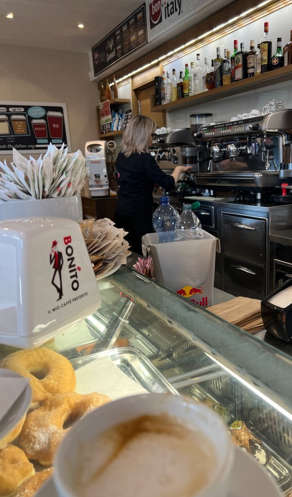 The cashier was courteous, but my appreciation went to this woman who delivered coffees to double stacked line of customers at the bar. I had my cappuccino in three minutes. 2 euros.