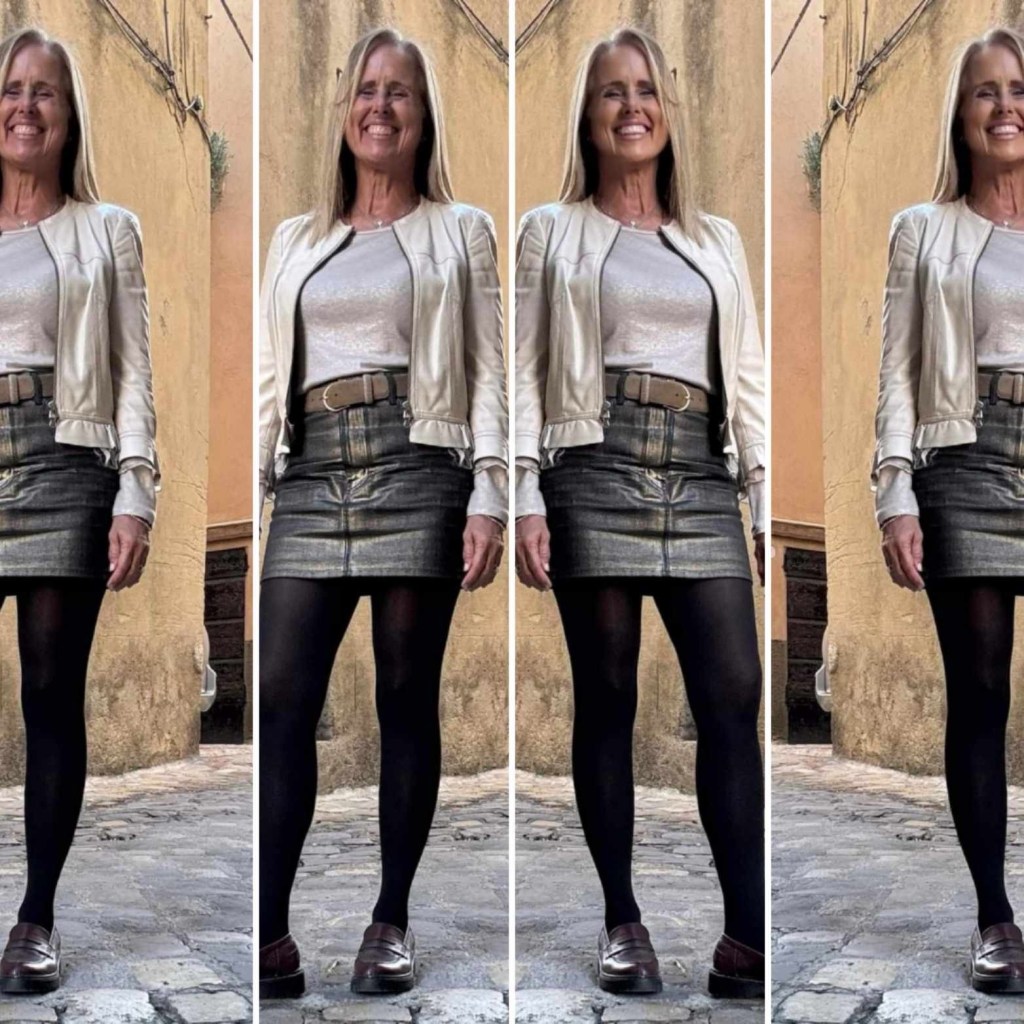 In a rush to catch up with the changing weather, autumn outfits seem more random. Marching tights with loafers is always a fun idea. Matching burgundy loafers with a gold jeans skirt seemed risky but the gold in the skirt was paired with a long-sleeve t-shirt (the excellent cut is by Majestic Filatures). And the tones calmed down with a neutral belt and leather jacket. This look as fresh just after a blow dry at the coiffeur.