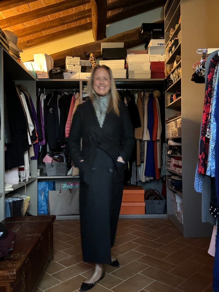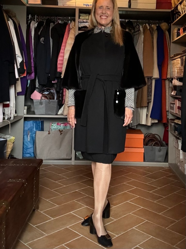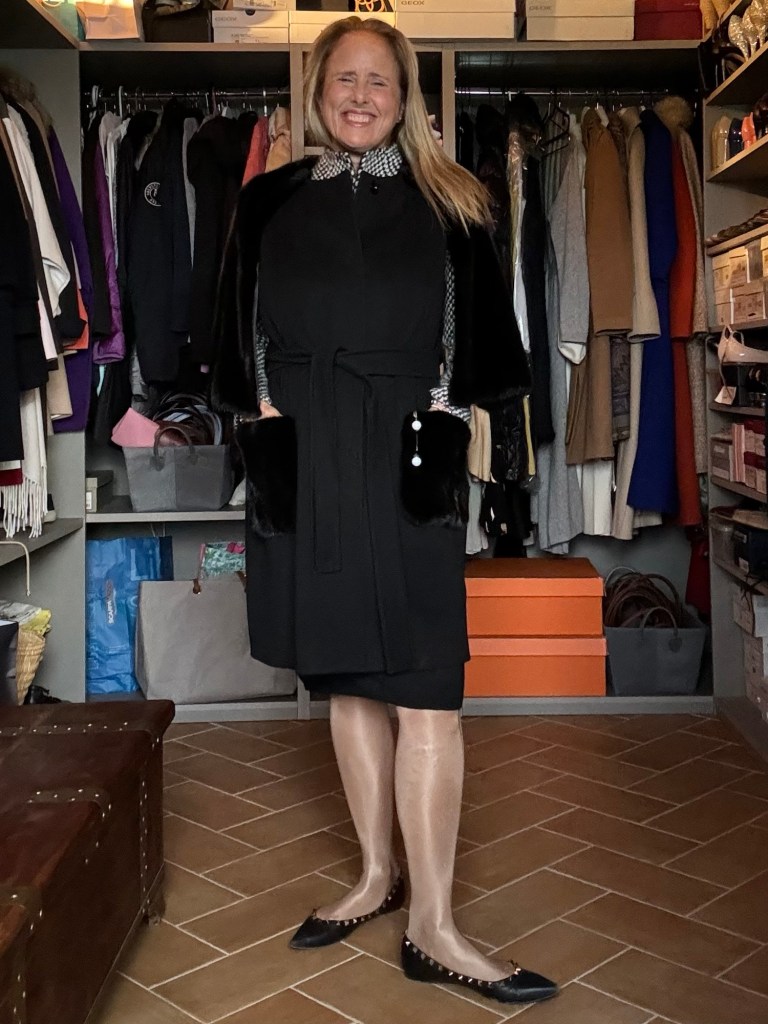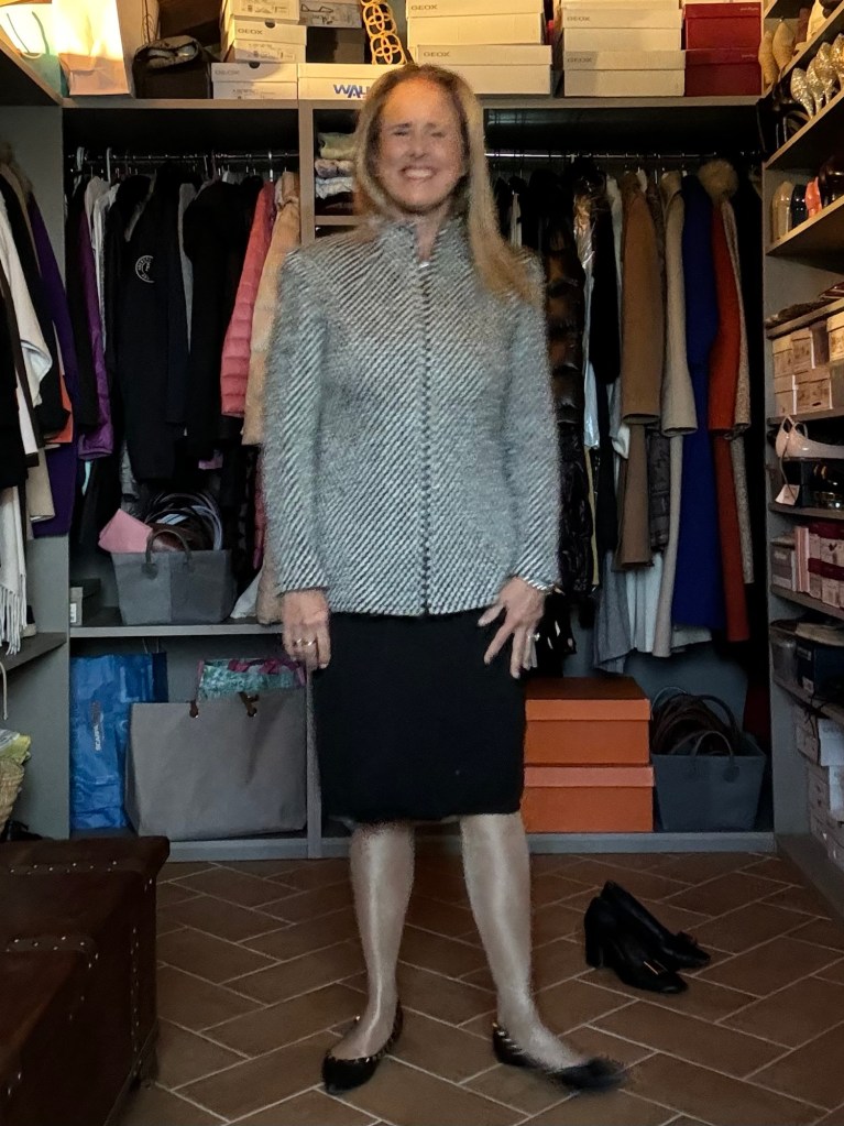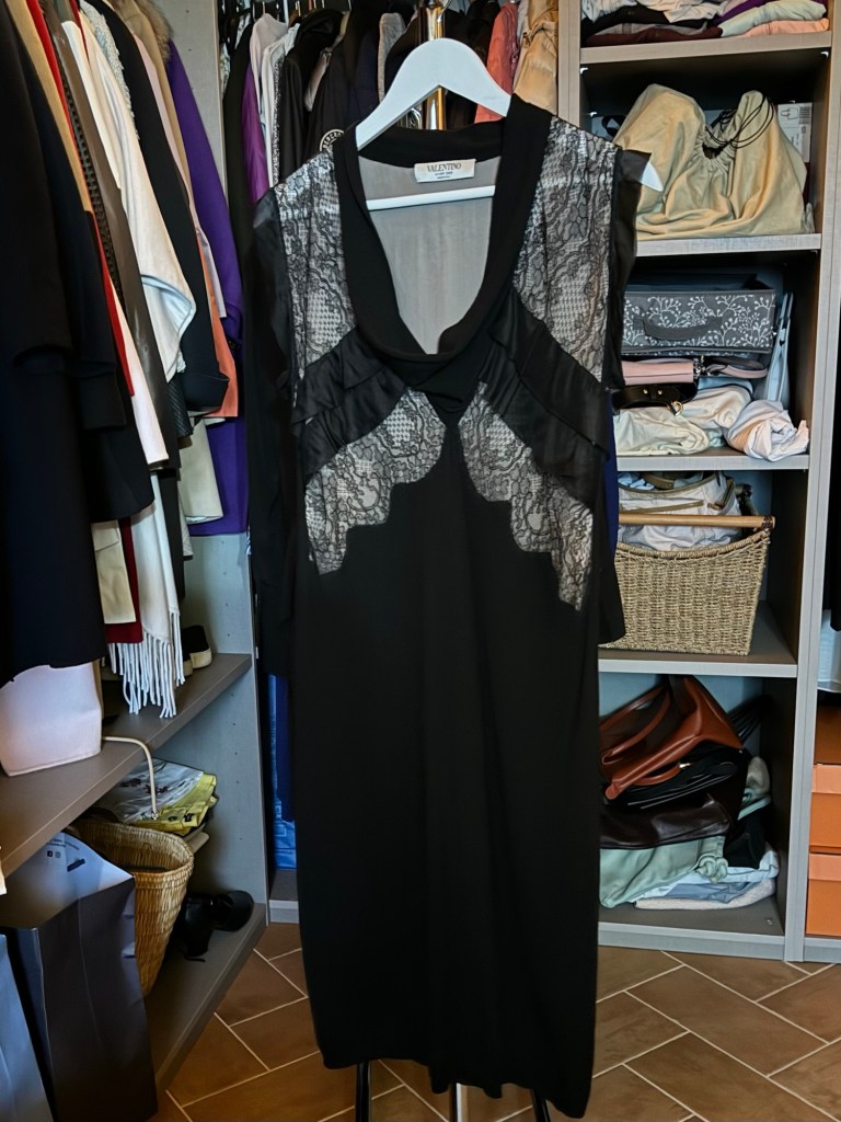 This dress is from the 2008 Valentino collection and was made in Italy. I’ve rarely worn it, but I paired it with a rarely worn Valentino jacket and found a match. The outfit can be worn with dressy Valentino flats or Italian pumps; with a short black coat or with a long black coat. What would happen if you explored your closet and played dress up?