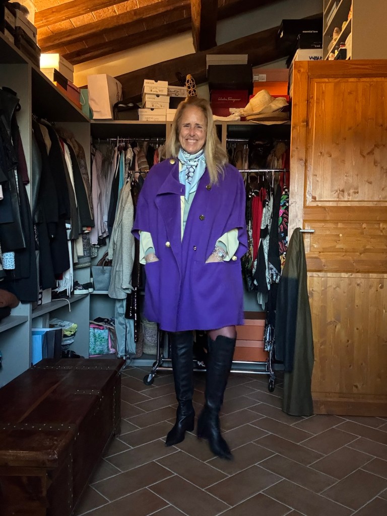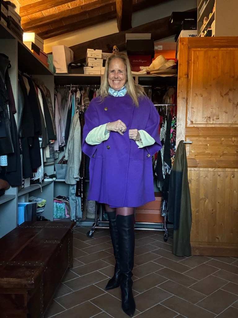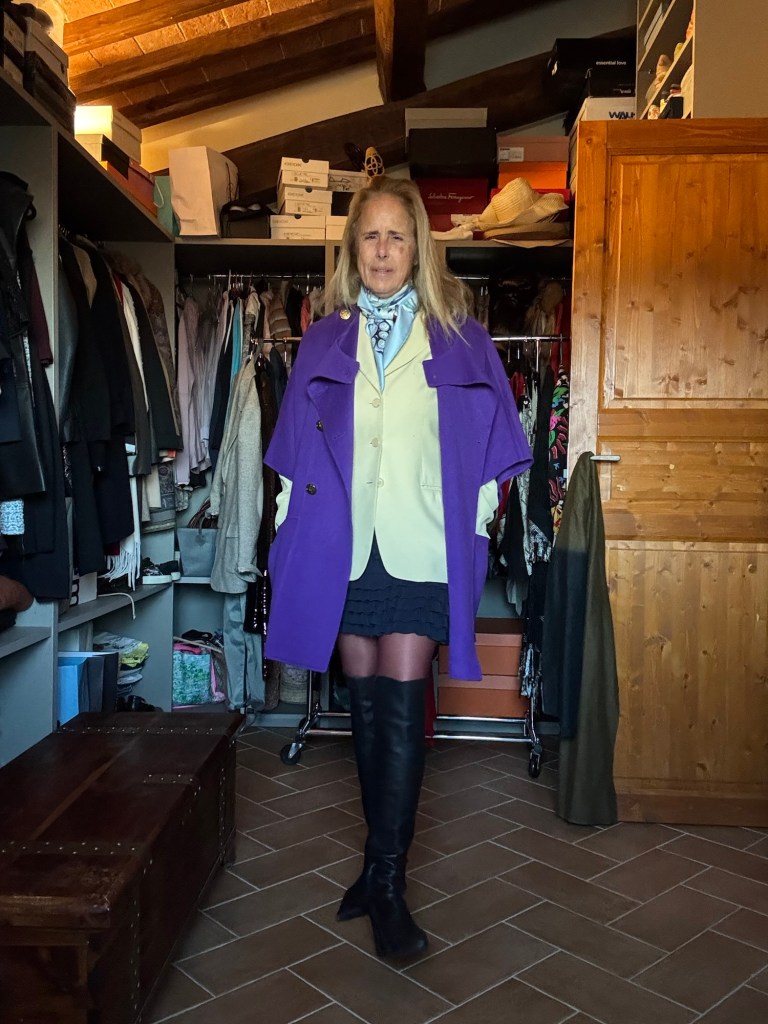 The yellow gabardine suit jacket was bought in Milan more than 25 years ago and is roomy enough to go over a cashmere sweater.